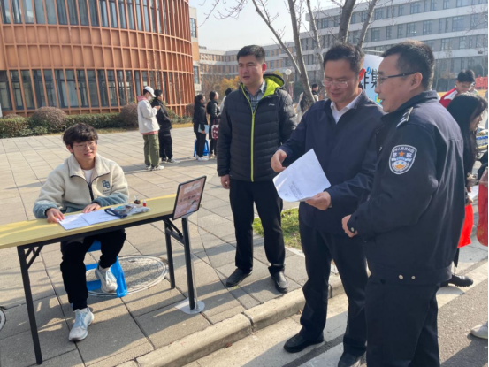 为增强同学们的反诈意识,提升识骗防骗能力,12月6日下午,保卫处联合电子信息工程学院举办“反诈集市”活动,校党委常委、副校长左同宇、保卫处副处长陈翀和驻校民警到场指导。