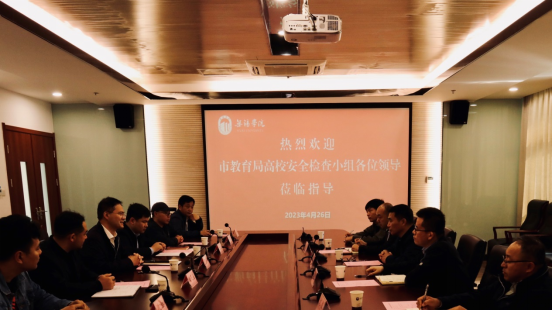 为深入贯彻市教育局关于校园安全工作的部署,4月26日上午,市教育局高校安全检查组来校开展校园安全检查工作。无锡科技职业学院保卫处处长徐海东、后勤处副处长黄强冬、学生工作处副处长邹铭辉和教务处副处长沈微等检查组领导通过听取汇报、座谈交流、查阅资料、重点谈话、实地查看等多种方式,从严从实开展校园安全检查工作。校党委常委、副校长左同宇,校保卫处、学生工作处、后勤管理处、实验室与设备管理中心等部门负责同志陪同参加。