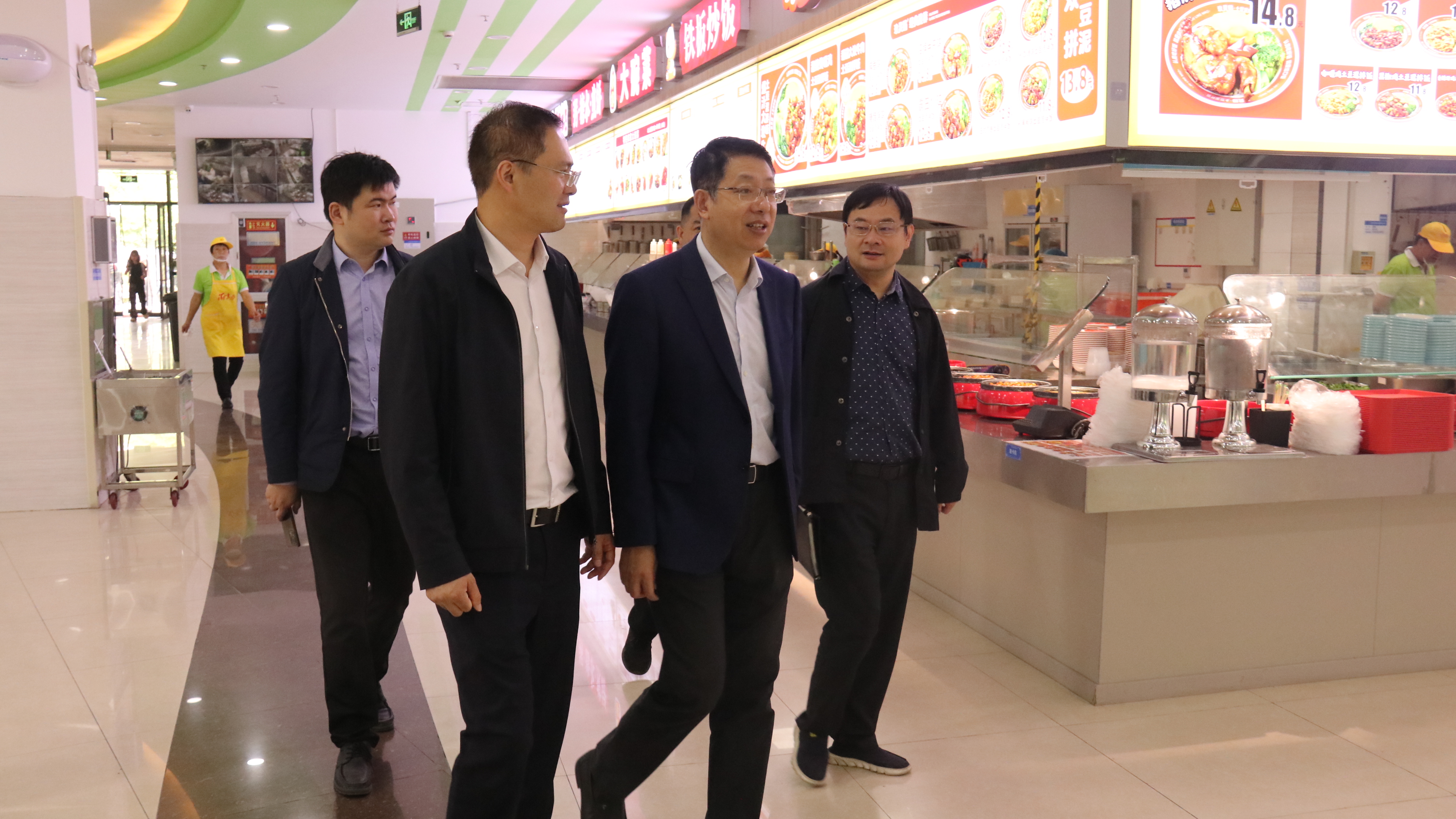校领导一行深入监控室、门岗、食堂、宿舍、警务室等校园重点区域,查看落实校园治安防控、校门出入管理、食品安全、消防安全、校舍安全、人员值班值守等情况,并围绕安全责任落实、安全管理制度建设、安全隐患排查整改、应急处置反馈、部门协同配合等重点环节进行指导检查。
