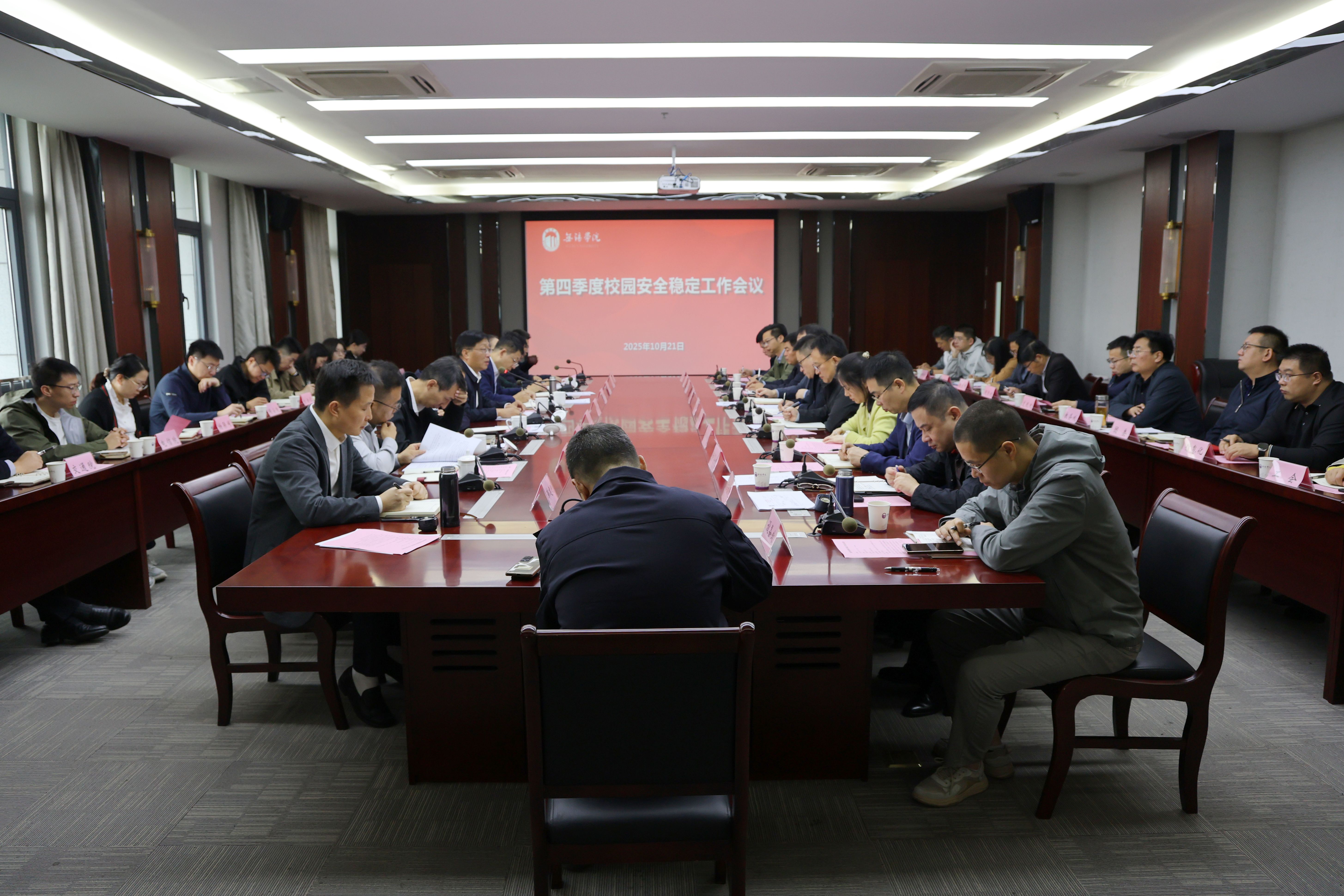 为贯彻落实近期省、市关于校园安全稳定工作的部署要求,10月21日上午,我校在行政楼525会议室召开第四季度校园安全稳定工作会议。全体校领导出席会议,校党委书记张永宏作总结讲话,校长孙雁飞明确工作要求。各职能部门、二级学院党总支负责人和驻校民警参加会议。会议由副校长胡剑凌主持。