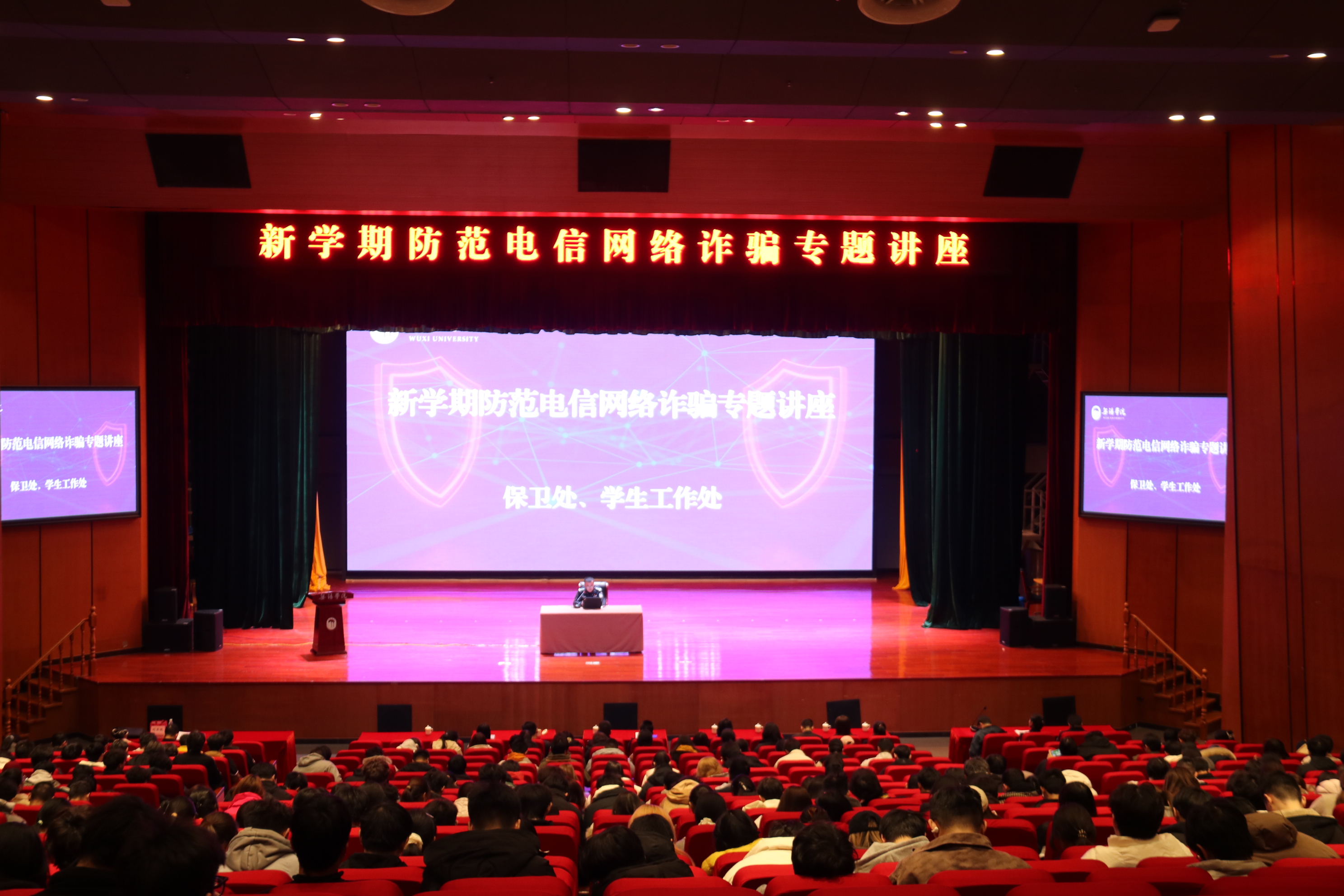 为切实提升师生防诈意识和反诈能力,有效遏制电信网络诈骗案件发生,3月11日下午,保卫处联合学生工作处特邀属地公安一线办案民警来校开展防范电信网络诈骗专题讲座,近600余名师生到场聆听。
