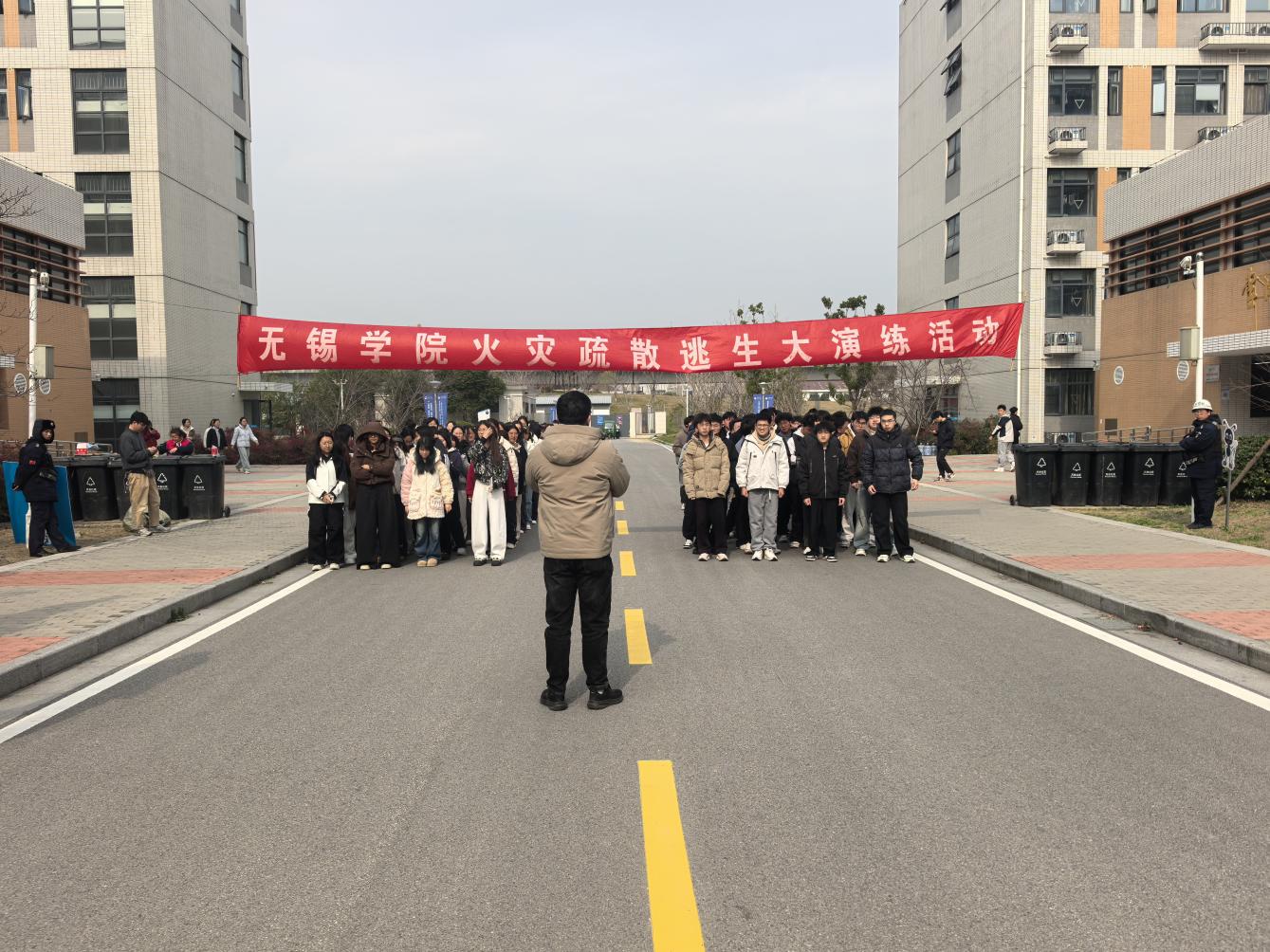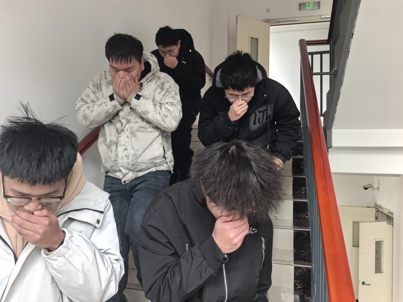 演练前,专业消防指导员向全体参与人员明确了疏散演练的具体路线、集结区域及关键逃生注意事项。随着疏散指令的发出,宿舍疏散演练正式启动。各宿舍学生迅速响应,采用湿毛巾捂住口鼻、保持低姿的正确方式,沿指定路线靠右有序撤离。宿管人员与辅导员现场进行引导和秩序维护,确保全体学生在规定时间内安全抵达集结区域。随后,各辅导员迅速清点人数并上报演练总指挥,保卫处汇总反馈整体疏散情况,切实保障无人员遗漏。