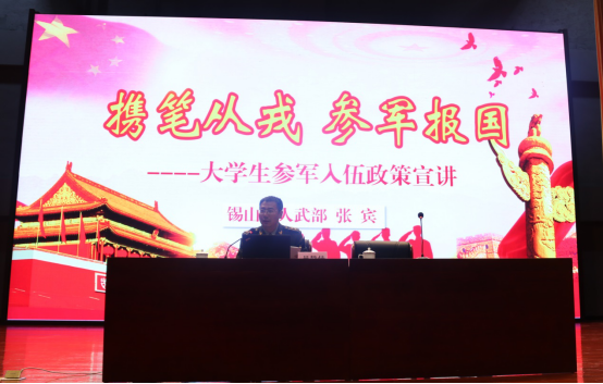 锡山区人武部张宾科长详细介绍了大学生参军入伍的应征报名条件、相关优惠政策及注意事项,鼓励在校大学生携笔从戎、参军报