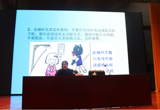 吴静佳警官结合自己多年的办案经验,通过生动的案例和详实的数据,向同学们详细介绍了大学校园多发易发案件的种类和特点,并讲解了防诈骗的对策。吴静佳警官要求同学们增强法制观念,做到学