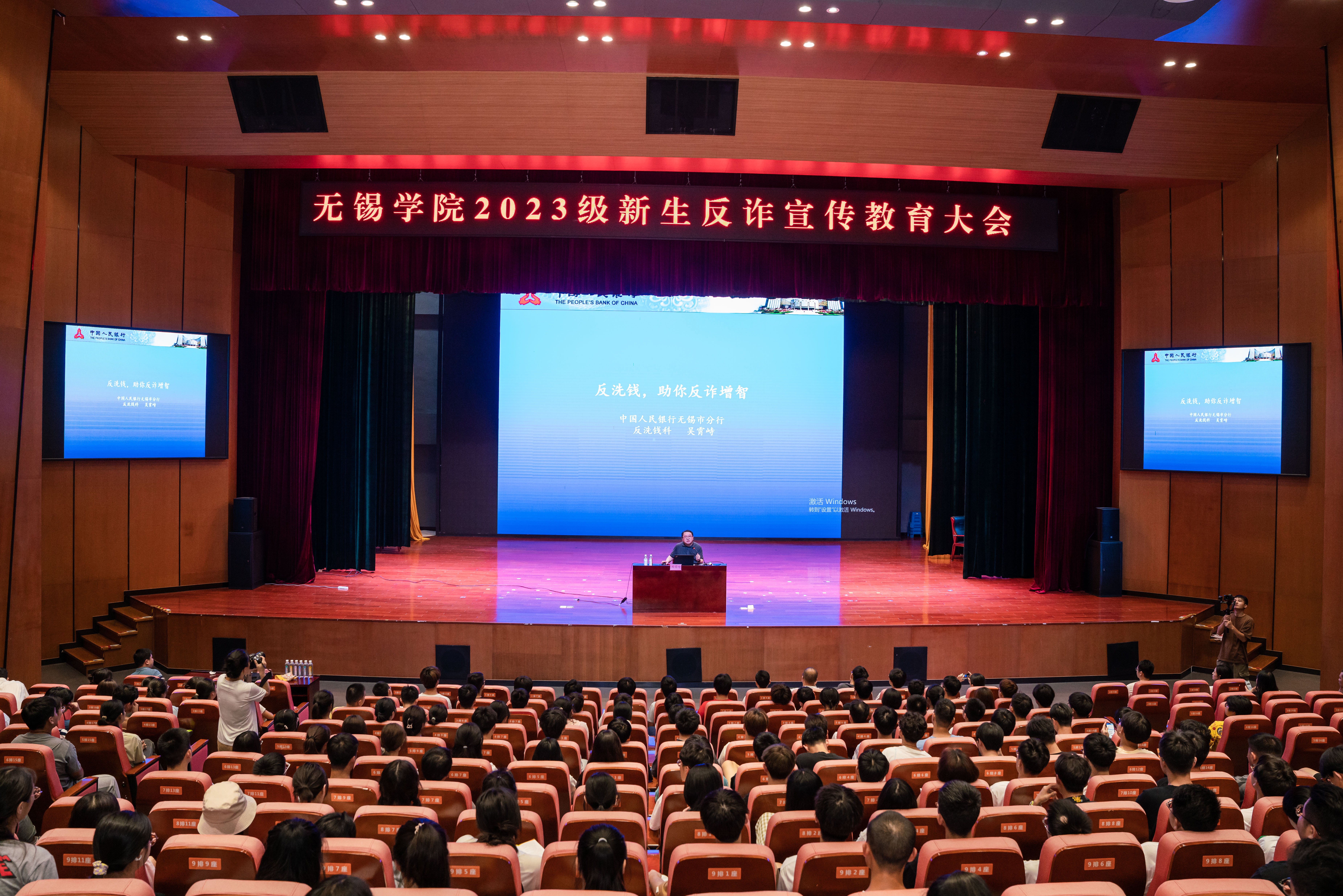 为切实提升新生防范电信网络诈骗和应对突发事件处置的能力,9月12日下午,保卫处、学生工作处联合中国人民银行无锡市分行和属地公安司法部门在我校大礼堂开展反诈宣讲进校园及反恐主题教育活动。2023级全体新生通过线上和线下相结合的方式参加此次活动,活动由保卫处副处长陈翀主持。